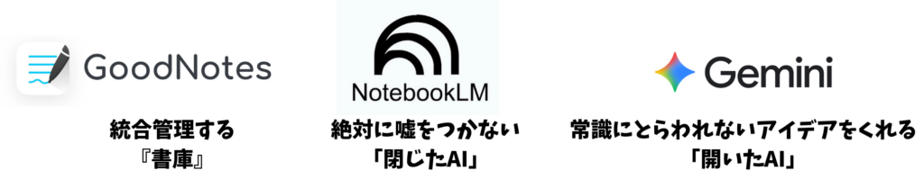 Goodnotesに書き出した「自分の言葉による要約」も、テキスト化して同様にメモに追加します。 - AIへの自己学習: